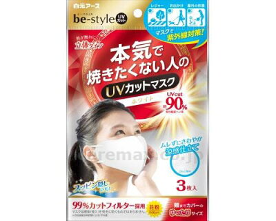 いまだけ!7/19-26★P最大23倍★【全国配送可】-ビースタイル UVカットマスク / ホワイト 3枚入 白元アース JAN 4902407582027 kt392621 取寄品 医療・施設 マスク その他(マスク)-【介護福祉用具】