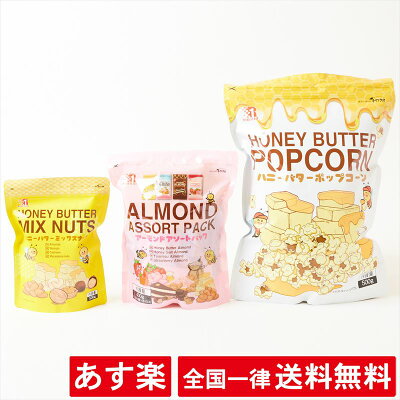 【3種類セット】【ハニー バター ポップコーン】【アーモンド アソート パック】【ハニーバター ミックスナッツ】【500g】【10g × 40袋】【500g】楽一フーズ ナッツ お菓子 お得なセット【あす楽】【送料無料】