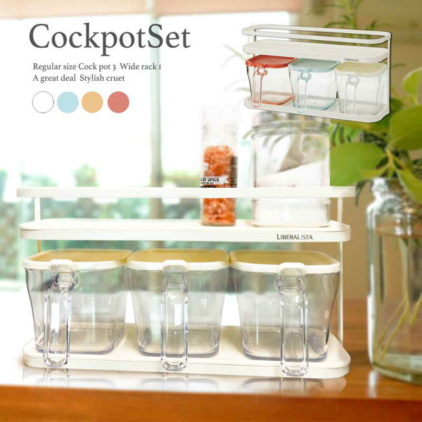 商品サイズ ワイドラック(mm):W353×D116×H185 (外寸) クックポッド レギュラー(mm):112×145×高さ106(外寸) 材質(トレー) フレーム/スチール トレー/PS すべり止め/EPDM 材質(クックポット) レギュラー:フタ・スプーン・本体/PP パッキン/発泡PE カラー ワイドラック :ホワイト クックポット: ホワイト・スカイブルー・レッド・イエロー 商品説明 ワイドラック1個+クックポットレギュラー3個のセット商品です。