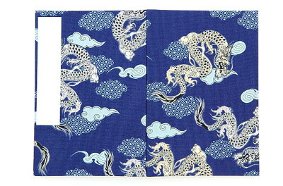 表紙は青地に龍と雲がプリントされたコットン生地を使用。