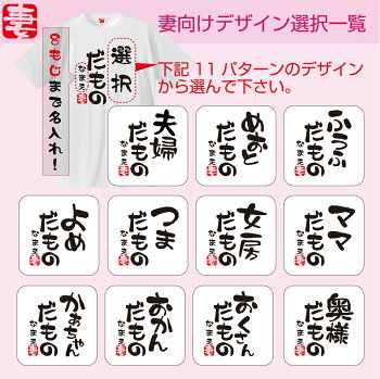 ■夫デザイン 【夫】夫婦だもの 【夫】めおとだもの 【夫】ふうふだもの 【夫】だんなだもの 【夫】おっとだもの 【夫】旦那だもの 【夫】パパだもの 【夫】とうちゃんだもの 【夫】おとんだもの 【夫】ていしゅだもの 【夫】主人だもの ■妻デザイン 【妻】夫婦だもの 【妻】めおとだもの 【妻】ふうふだもの 【妻】よめだもの 【妻】つまだもの 【妻】女房だもの 【妻】ママだもの 【妻】かあちゃんだもの 【妻】おかんだもの 【妻】おくさんだもの 【妻】奥様だもの ※ペアセットではございませんのでご注意ください。